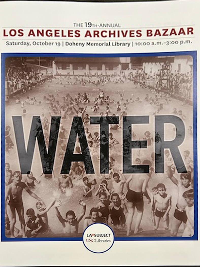 The Los Angeles ARCHIVES BAZAAR is an annual, free, and open-to-the-public event that offers a unique opportunity to engage with a diverse range of archives, from major institutions to private collectors. This year, the full-day program delves into the turbulent HISTORY OF WATER in Southern California, exploring its journey from the snow-capped mountains to the Pacific Ocean. We'll delve into the region's vital aqueducts, examine the traces of natural waterways in our suburbs, and gain a deeper understanding of the larger rivers that shape our landscape.