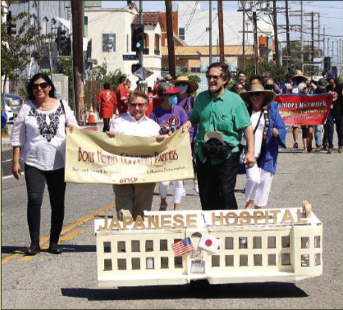 Little Tokyo Historical Society bringing in the parade. Photo by Douglas