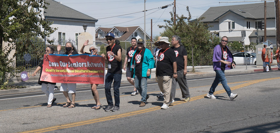 Save Our Senoirs Network, SOS at Sakura Gardens in Boyle Heights from the ongoing evictions. Photo by BHCP