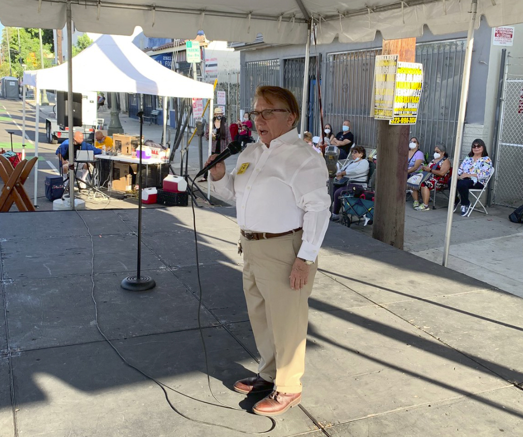 Assemblymember Miguel Santiago introduces Congresswoman Karen Bass. Photo by Douglas