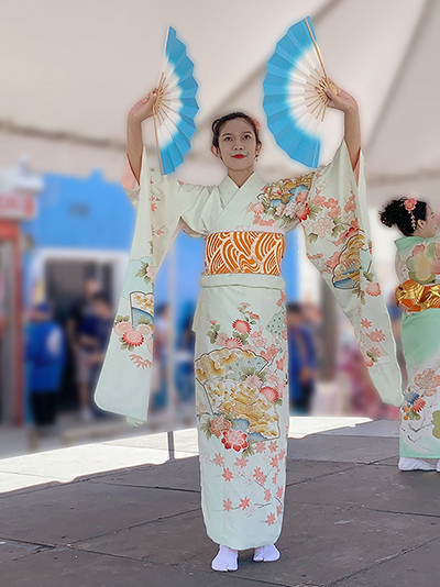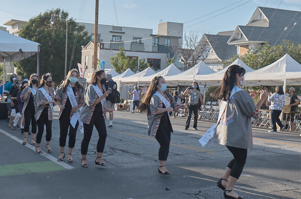 2022 Nisei Week Queens Court participating in our Odon/Bon Odori Dancing. Photo by Douglas