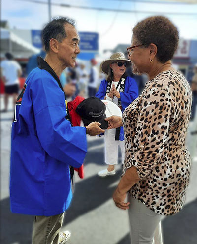 Councilmember with Michael Okamura, president of LTHS. Photo by BHCP