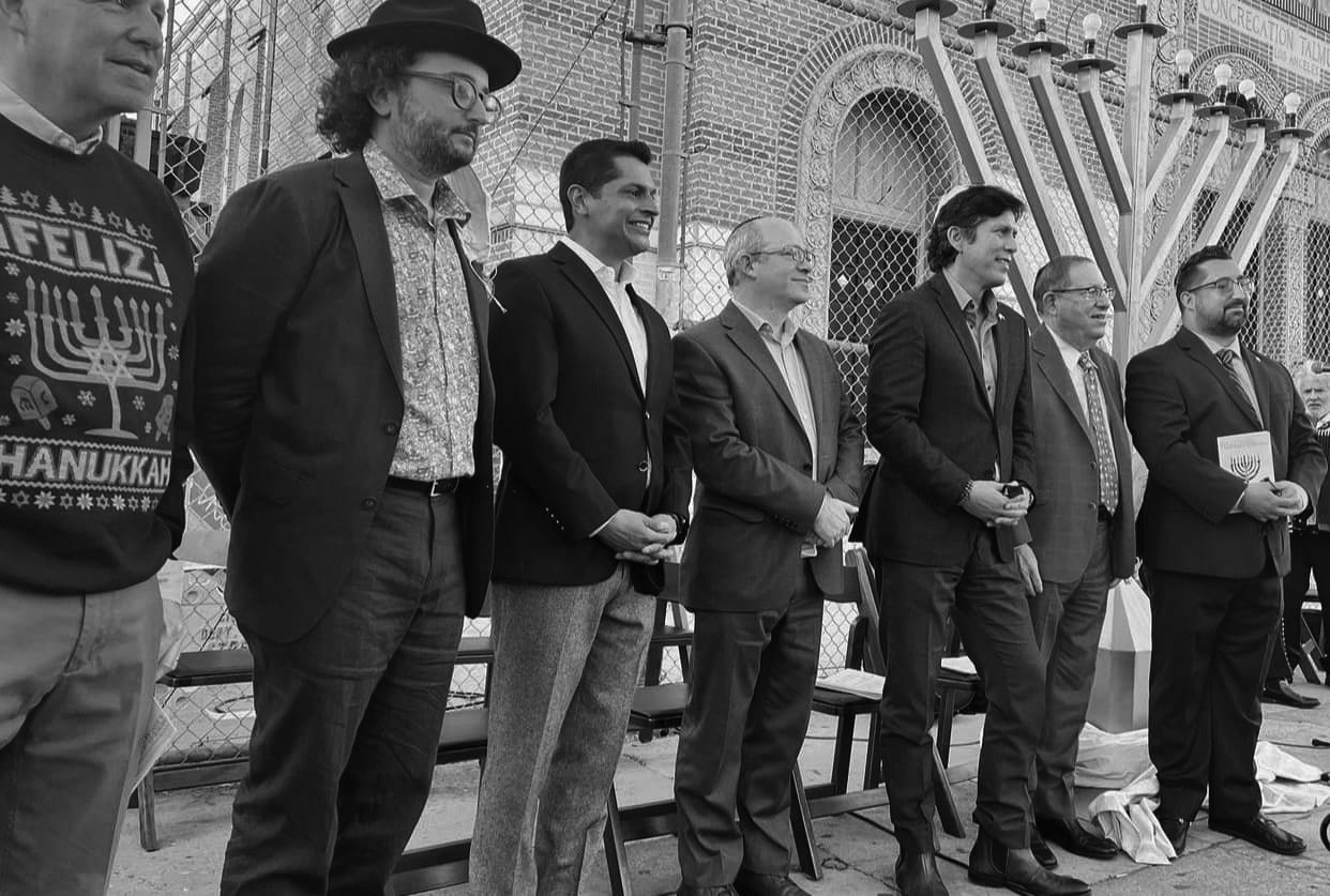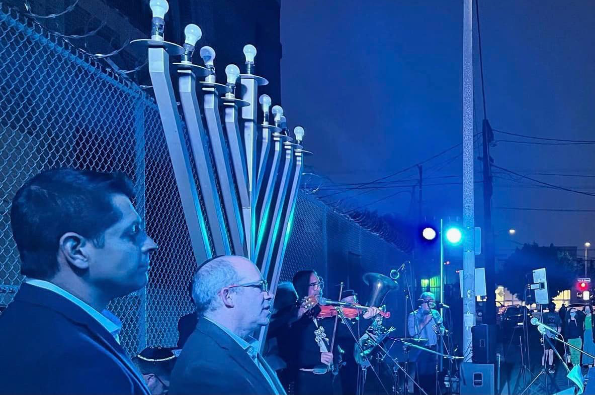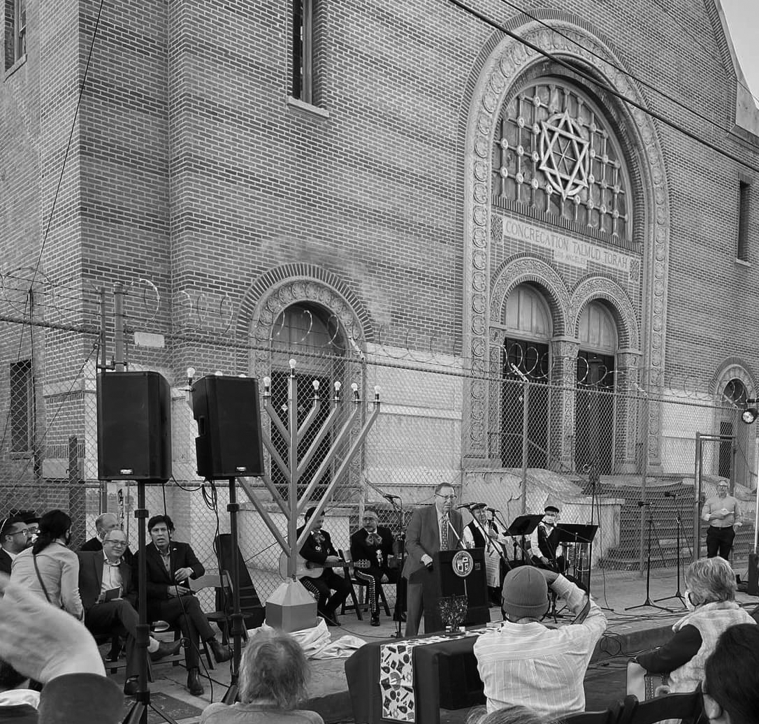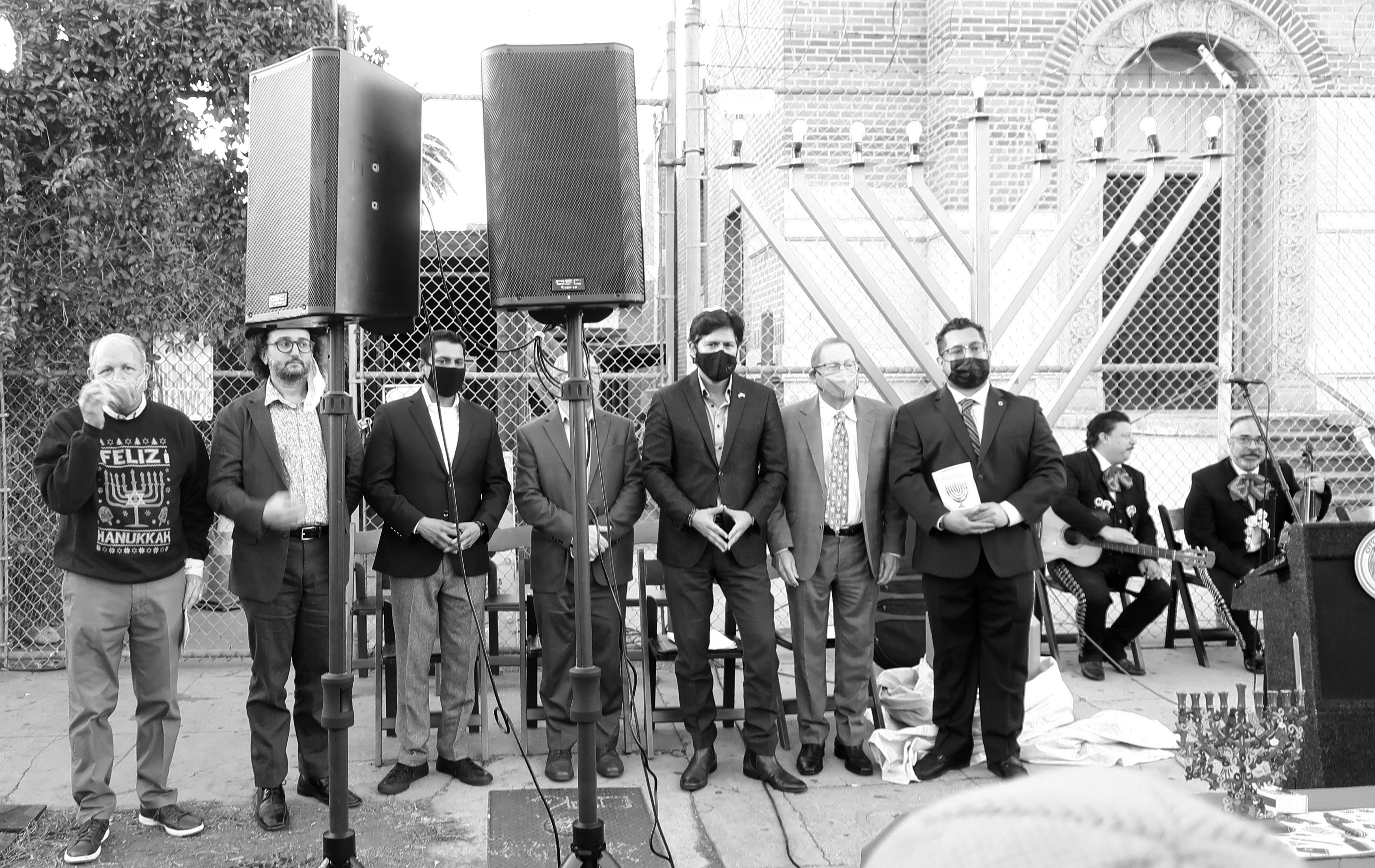 The 1st Annual Menorah Lighting and Chanukah Hanukkah Celebration, which took place out in front of our historic Breed Street Shul, gathering are many, Assemblymember Miguel Santiago, Councilmember District 14 Kevin de Leon, Councilmember Paul Koretz District 5, Boyle Heights Community Partners, Temple Beth Israel of Highland Park and Eagle Rock, and the Jewish Historical Society of Southern California